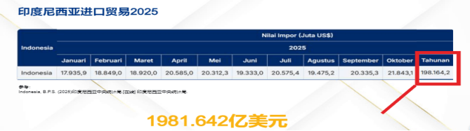 2025年印尼进口商业总额达到1981。642亿美元,复杂的进口规模折射出印尼市场对各类商品,特别是工业、本钱类产物的强劲需求。做为东南亚生齿第一大国(总生齿超2。85亿,雅加达焦点生齿超1000万),印尼的消费取工业出产需qiu持续,进口市场的扩容为海外企业ti供了广漠的入局空间。