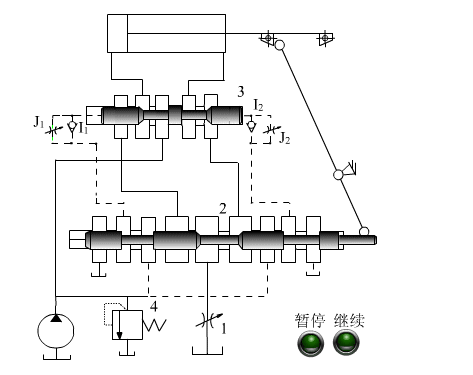 操纵行程阀检测第一个液压缸的到位信号,触发第二个液压缸动做。节制精确靠得住,但管安插较复杂,调整行程需改变挡块。