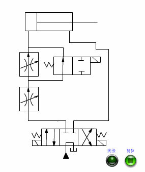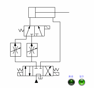 液压缸快进到位,触刊行程开关,电磁阀得电,改变油(如接入调速阀),切换为工进。通过电气节制,调整便利,易于取PLC等节制器集成。
