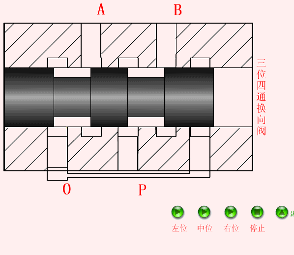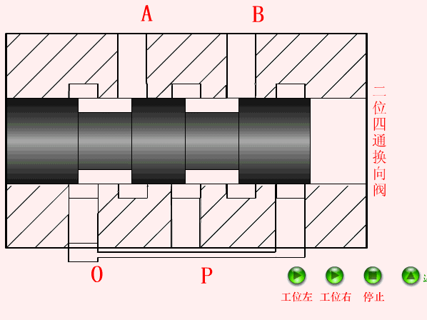 该阀有两个工做和四个油口(P、T、A、B)。通过切换阀位,可改变压力油取施行元件两腔的通断关系,常用于节制双感化液压缸的来去活动。