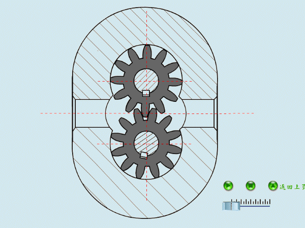 齿轮泵依托一对啮合齿轮的齿槽分手构成低压吸油,齿槽啮合挤压油液输出高压油。布局简单、体积小、成本低,但对油液污染,容积效率较低,输出压力脉动较大。常用于中低压液压系统或做为辅帮泵。