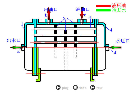 水冷却器通过流动的冷却水取高温液压油进行热互换,降低油温。凡是采用壳管式或板式布局,需冷却水流量和洁净度,以维持系同一般工做温度。